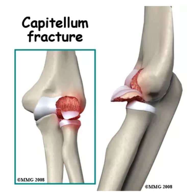 Capitellar fractures are usually caused by trauma and are commonly associated with other elbow injuries. The mechanisms include: